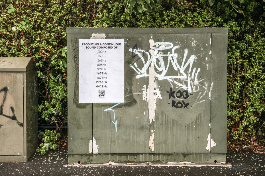 “Lockview Road is on the way to the Lagan Meadows. It’s very odd that I’ve never heard this box before⦠Guess I also like to shortcut my way to the Lagan. Today I passed by and heard it for the first time. I took the contact microphone and the recorder from the backpack and recorded its sound.”